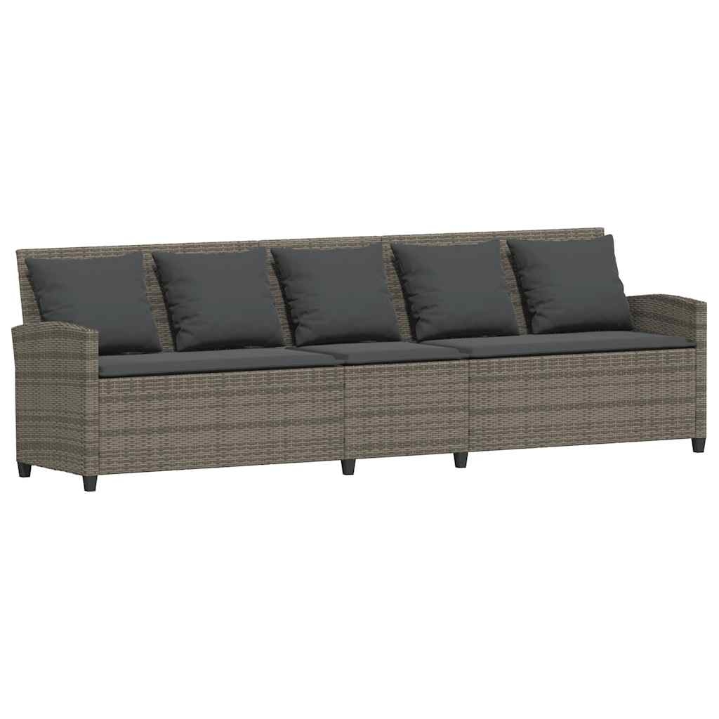 vidaXL Gartensofa 5-Sitzer mit Kissen Grau Poly Rattan