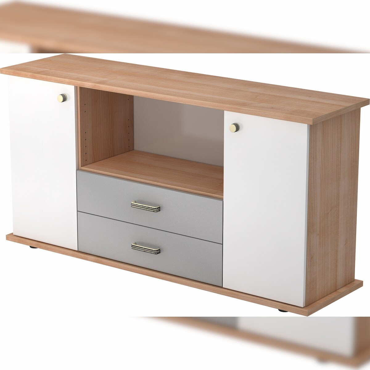 bümö Schreibtisch Schrank Büro mit Hängeregister für Hängeordner, Schubladenschrank Holz in Ahorn, Container mit Schubladen & Hängeregistratur -