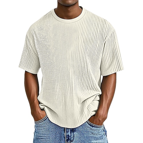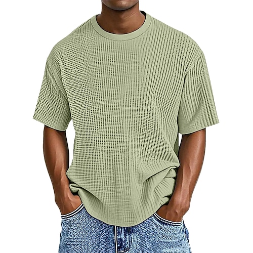 Per uomo Maglietta Waffle Maglietta Manica Corta Girocollo Estate Tinta unica Testurizzato Moda Designer Casual Tasca Lavorato a maglia All'aperto Casuale Quotidiano Blu Verde chiaro Viola Maglietta