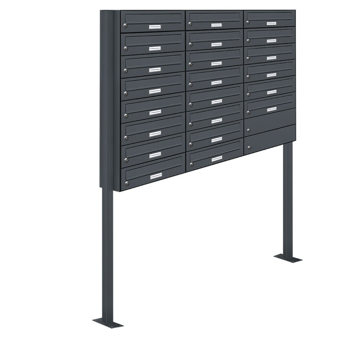 AL Briefkastensysteme 23 Fächer Premium Stand Briefkasten Anlage in RAL 7016 Anthrazit für Post A4, robust, wetterfest, Artikelnummer: 132P23S3KSP7016