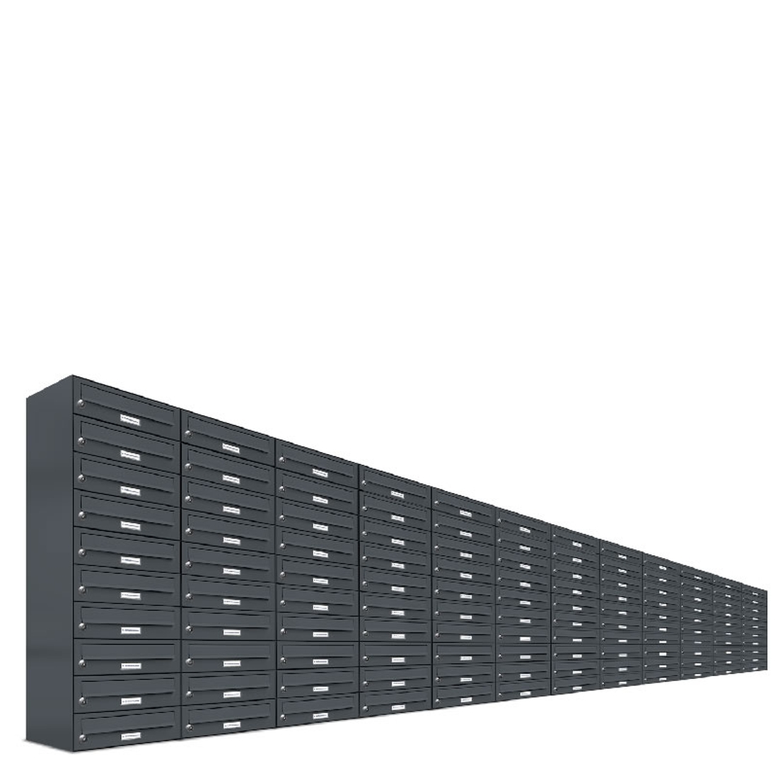 AL Briefkastensysteme 120 Fächer Premium Wand Briefkasten Anlage RAL 7016 Anthrazit Grau, Post A4, robust, wetterfest, Artikelnummer: 132P120EA12P7016