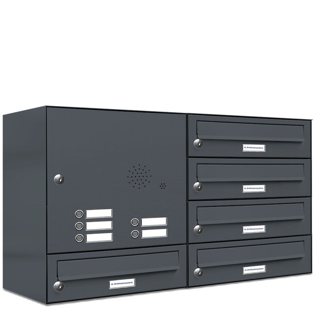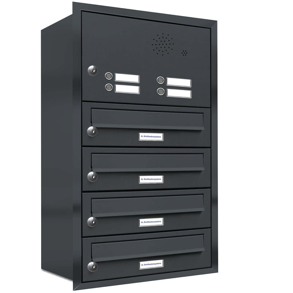 AL Briefkastensysteme 4 Fächer Premium Unterputz Briefkasten Anlage mit Klingeln RAL 7016 Anthrazit Grau, A4, wetterfest, Artikelnummer 132P4U1KSP7016