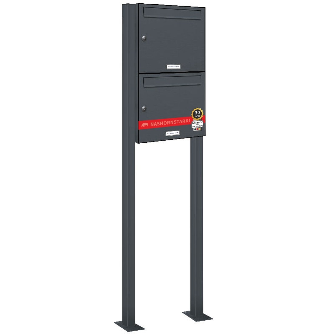 AL Briefkastensysteme 2 Fächer Premium Stand Briefkasten Anlage in RAL 7016 Anthrazit für Post A4, robust, wetterfest, Artikelnummer: 331P2S1P7016