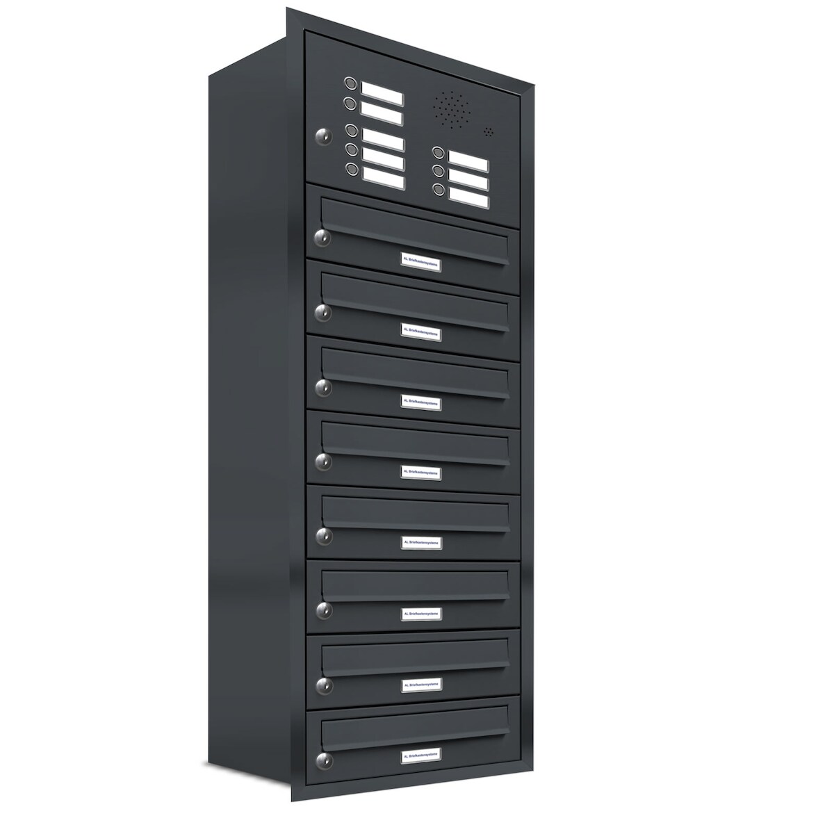 AL Briefkastensysteme 8 Fächer Premium Unterputz Briefkasten Anlage mit Klingeln RAL 7016 Anthrazit Grau, A4, wetterfest, Artikelnummer 132P8U1KSP7016