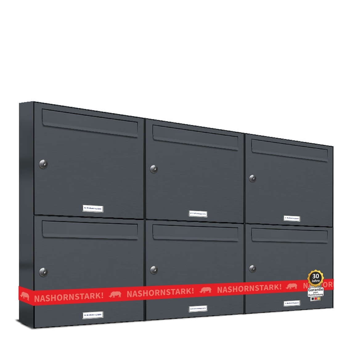 AL Briefkastensysteme 6 Fächer Premium Wand Briefkasten Anlage A4, in RAL 7016 Anthrazit Grau und wetterfest, Artikelnummer: 331P6EA3P7016
