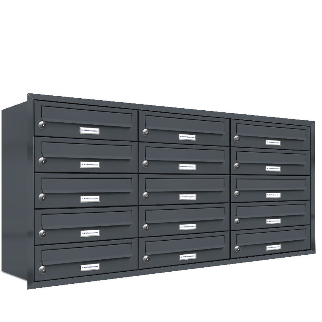 AL Briefkastensysteme 15 Fächer Premium Unterputz Briefkasten Anlage RAL 7016 Anthrazit Grau, Post A4, robust, wetterfest, Artikelnummer 331P15U5P7016