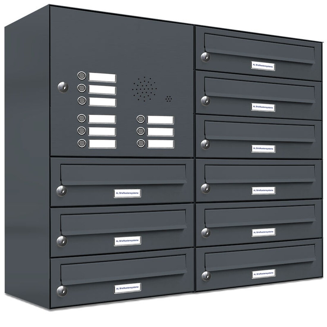 AL Briefkastensysteme 9 Fächer Premium Wand Briefkasten Anlage in RAL 7016 Anthrazit Grau, Post A4, robust, wetterfest, Artikelnummer: 132P9EA2KSP7016