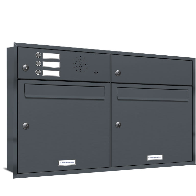 AL Briefkastensysteme 2 Fächer Premium Unterputz Briefkasten Anlage RAL 7016 Anthrazit, für Post A4, robust, wetterfest, Artikelnummer 331P2U2K3SP7016