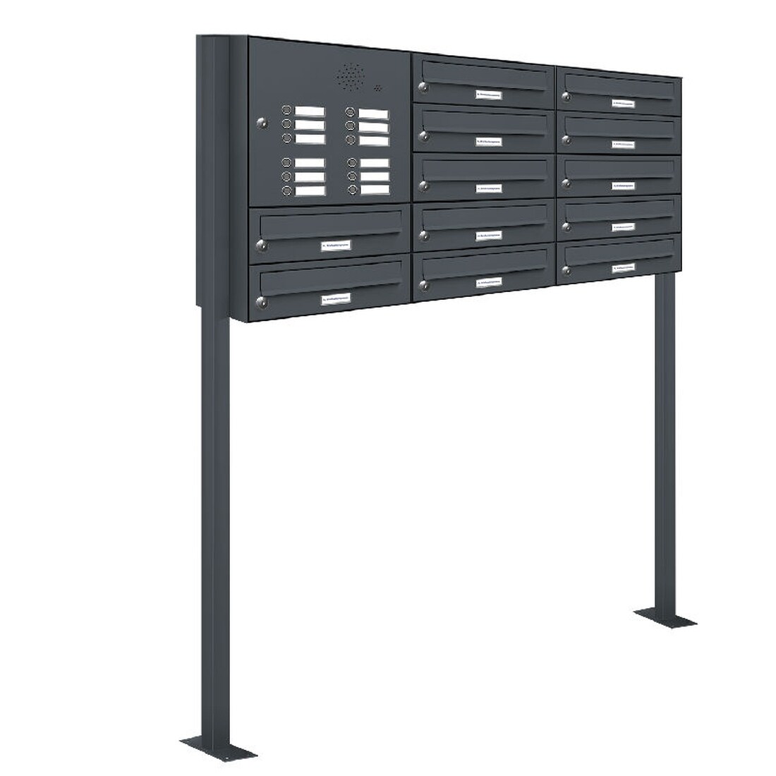 AL Briefkastensysteme 12 Fächer Premium Stand Briefkasten Anlage in RAL 7016 Anthrazit für Post A4, robust, wetterfest, Artikelnummer: 132P12S3KSP7016