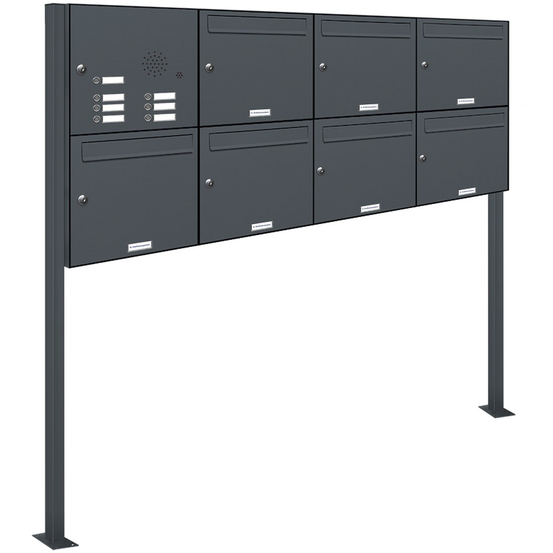 AL Briefkastensysteme 8 Fächer Premium Stand Briefkasten Anlage in RAL 7016 Anthrazit Grau, Post A4, robust, wetterfest, Artikelnummer: 132P8S1P7016