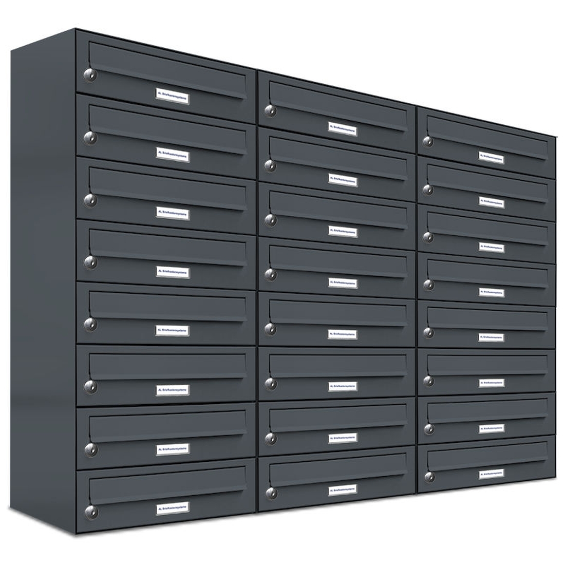 AL Briefkastensysteme 24 Fächer Premium Wand Briefkasten Anlage in RAL 7016 Anthrazit Grau, Post A4, robust, wetterfest, Artikelnummer: 132P24EA3P7016