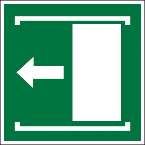 Dreifke® Rettungszeichen, Schiebetür öffnet nach links, E034 | Folie selbstklebend, langnachleuchtend | 100x100 mm | ASR A1.3 (DIN EN ISO 7010)