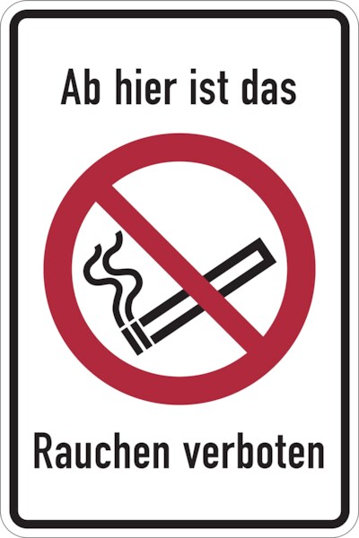 Verbotsschild, Kombischild, Ab hier ist das Rauchen verboten - ASR A1.3 (DIN EN ISO 7010) - 200x300x0.45 mm Aluminium geprägt