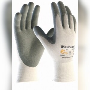 ATG `MaxiFoam` (34-800) Nylon-Strickhandschuhe, Kat. 2, Nitrilschaum-Beschichtung, handflächenbeschichtet, weiß/grau - Größe 9 (L)