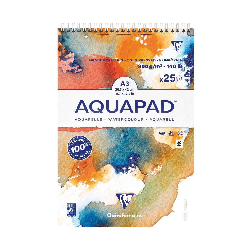 CLAIREFONTAINE Bloc spiralé Aquapad A3+ 25F 300g