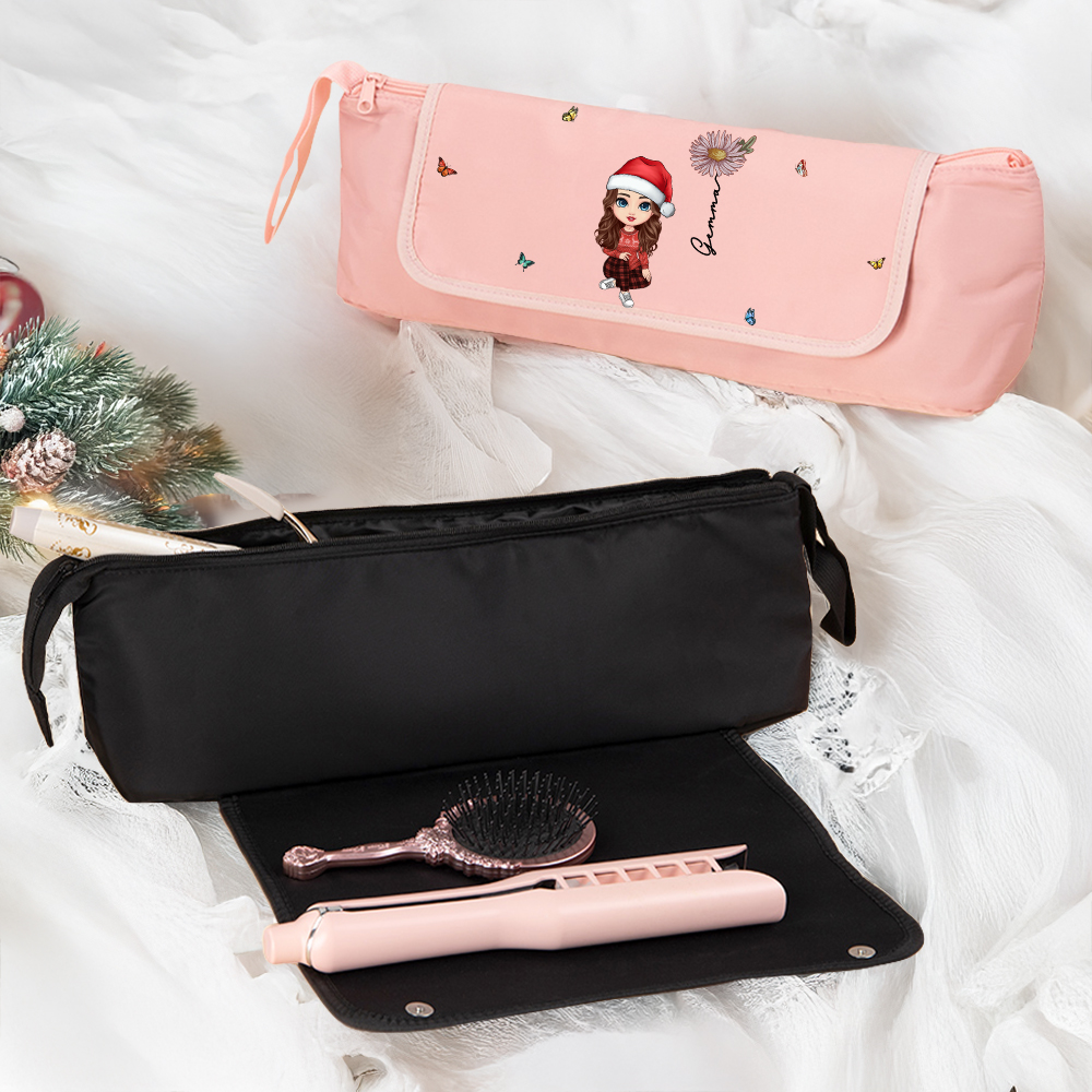 Personalisierte Cartoon-Charakter Geburt Blume Portable Heizung Stab Aufbewahrungstasche mit Namen Weihnachten Reisezubehör Geschenk für Frauen