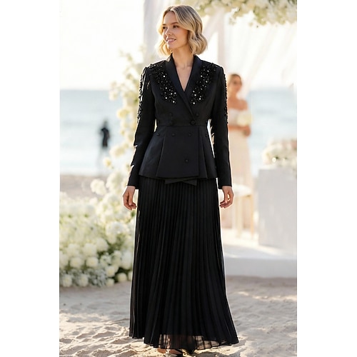 Per donna Abito blazer Due Pezzi Linea ad A Cocktail Ufficio Lavoro Elegante Manica Lunga Lunghezza al pavimento Lunghezza alla caviglia Dentellato Collo ripiegato Doppiopetto