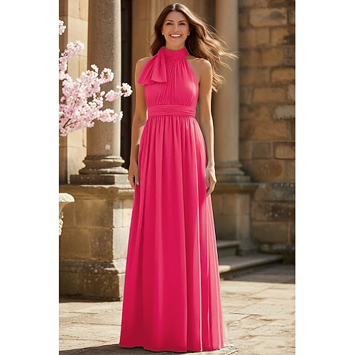 Linea ad A Lunghezza al pavimento Abito Formale Abito da sera Abiti da Ballo Elegante Senza Maniche All'americana Formale Ospite di nozze Chiffon con Pieghe