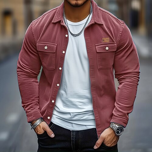 Per uomo Tinta unica Camicia di Velluto a Coste Giacca camicia Sopracamicia Manica Lunga Casual All'aperto Abbigliamento Quotidiano Autunno Inverno Collo ripiegato Bottonato Caldo Giacca con tasche a