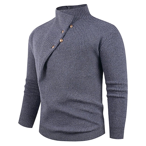 Per uomo Pullover Maglione Maglione a collo alto Maglione corto Maglione lavorato a maglia A coste Cavi Maglia Standard Pulsante Lavorato a maglia Liscio A collo alto Tenere al caldo Contemporaneo