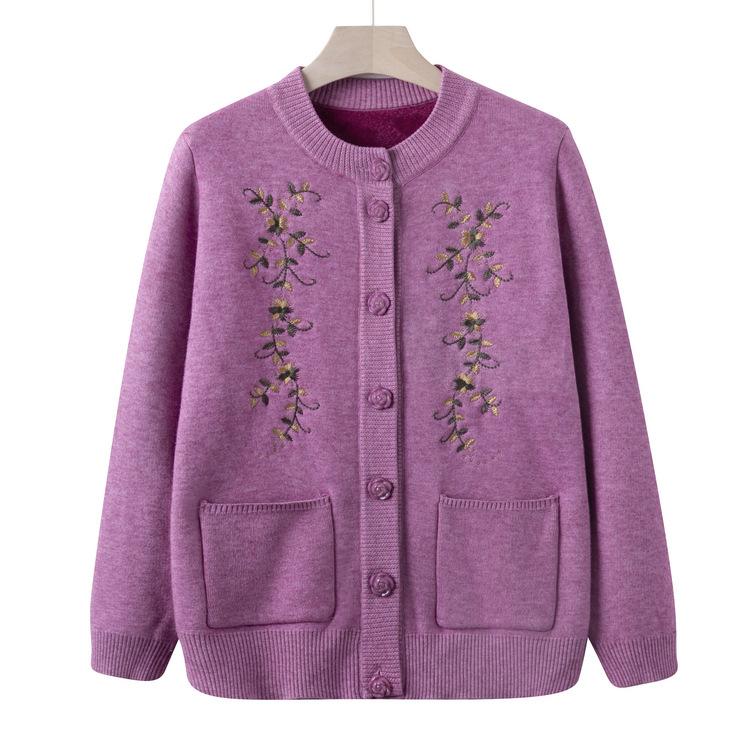 Middle-aged and Elderly People In Autumn Plus Velvet Thick Knitted Sweater Mother Coat Grandma Cardigan Sweater Winter Clothes Old Lady Clothes cm