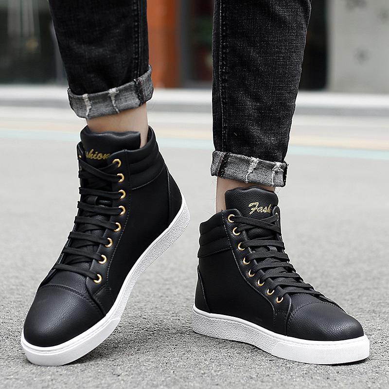 Mens Winter Warm Skateboard Shoes Casual High Top Lighweight Sports Shoes Men Cool Street White Soft Leather Sneakers Soft Cosy cm black