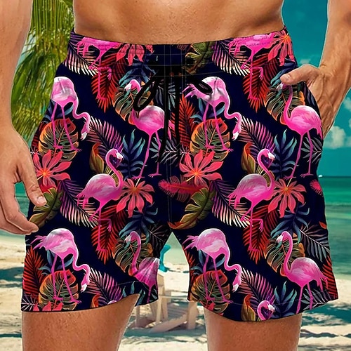 Per uomo Fenicottero Piante Tropicali Costumi da bagno Pantaloncini da mare Pantaloncini da Surf Misura del girovita medio Streetwear Hawaiano Casuale Quotidiano Ferie Tasca Coulisse Elastico in vita