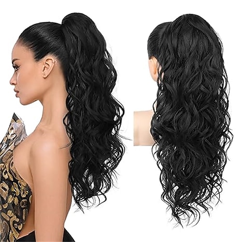 Extension per coda di cavallo da 24 pollici, lunga e riccia, con clip a forma di artiglio, extension per coda di cavallo con clip a mascella, extension per capelli sintetici naturali da donna, per