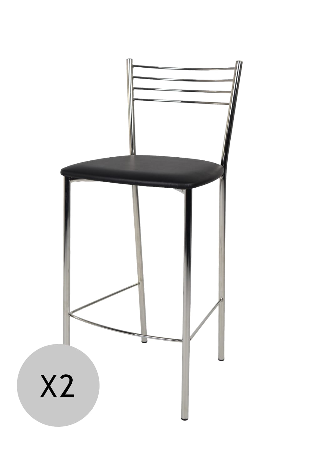 Set 2 Sgabelli acciaio seduta imbottita rivestita in finta pelle nera
