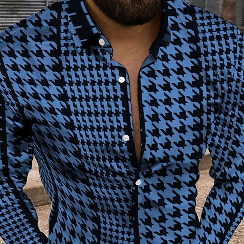 Per uomo Geometrica Vintage ▾ Camicia Camicia con bottoni Manica lunga Di tendenza Originale Informale Giornaliero Per eventi Fine settimana Primavera estate Collo ripiegabile 3D Bottone giù Nero