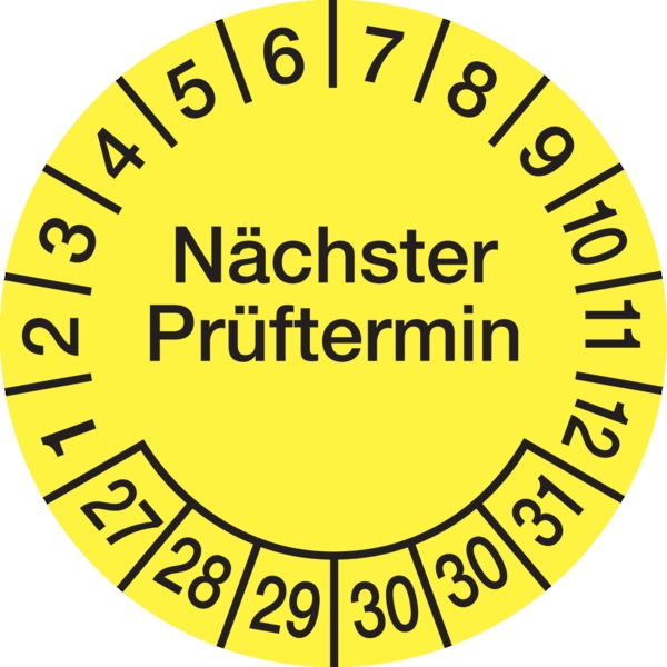 König Werbeanlagen Dreifke® Prüfplakette Nächster Prüftermin ab 29 gelb/schwarz - 30 mm Folie selbstklebend