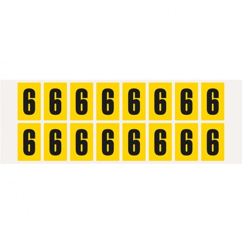 Aufkleber I Ziffer 6, gelb/schwarz, Folie, Schrifthöhe 25mm, 22x36mm, 320 Stück/Packung