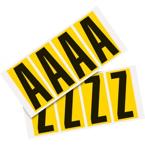Aufkleber I Kombipackung Buchstabe A-Z, gelb/schwarz, Folie, SH 95mm, 47x98mm, 4 je Buchstabe/PAK