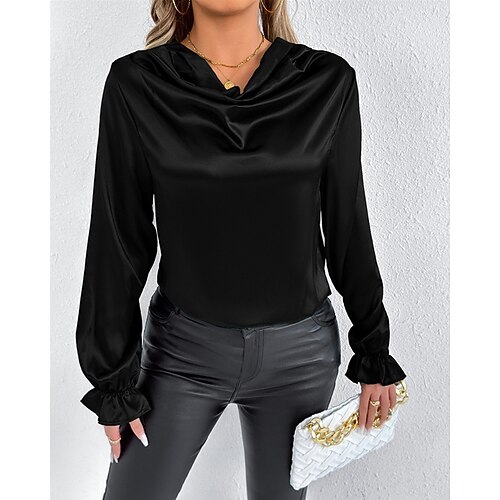Per donna Camicia Elegant Elegante Raso/Satin Tinta unica Elegante Casual Manica Lunga Scollo a Cascata Top Regolari Quotidiano Uscire Drappeggiato Nero Rosa Verde Albicocca Primavera Autunno