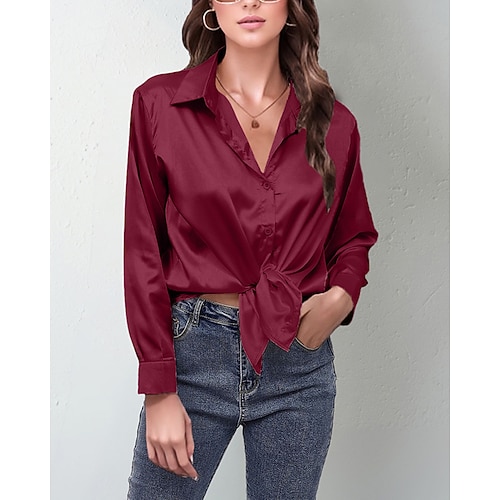 Per donna Camicia Elegant Elegante Raso/Satin Semplice Elegante Casual Manica Lunga Colletto a Camicia Top Regolari Quotidiano Uscire Bottoni Nero Rosa Vino Rosso Blu marino Primavera Autunno