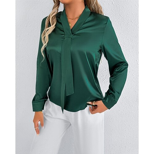 Per donna Camicia Elegant Elegante Raso/Satin Semplice Elegante Manica Lunga Scollo a V Top Regolari Lavoro Ferie Uscire Fiocco Nero Bianco Rosa Cachi Primavera Autunno