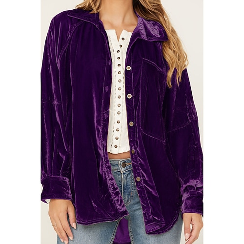 Per donna Camicia Velluto Elegant Elegante Tinta unica Semplice Elegante Signore Classico Manica Lunga Colletto a Camicia Top lunghi Quotidiano Lavoro Ferie Patchwork Tasca Bottoni Rosa Verde