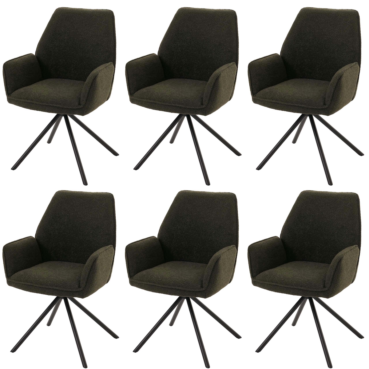 Mendler 6er-Set Esszimmerstuhl HWC-G67, Küchenstuhl Stuhl Armlehne, drehbar Auto-Position, Stoff Bouclé Öko-Tex MVG ~ olivgrün