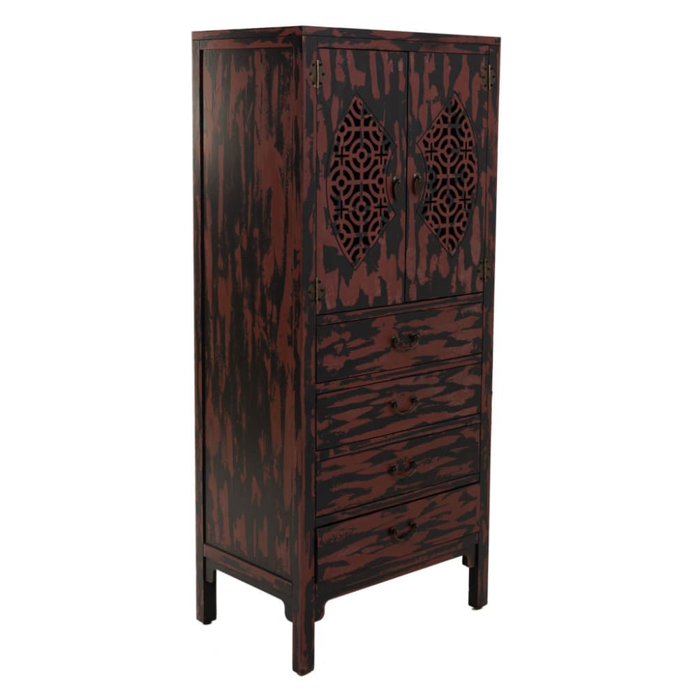 Armadio a 4 cassetti e 2 ante nero e rosso granato