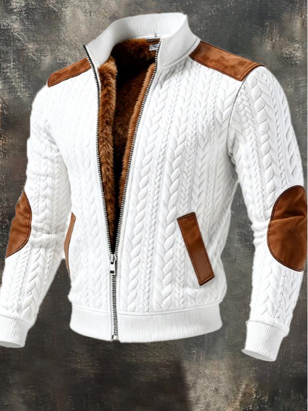 Herren Retro Strick Jacquard Outdoor Jacke 2025 mit Mehreren Taschen cm dunkelgraue