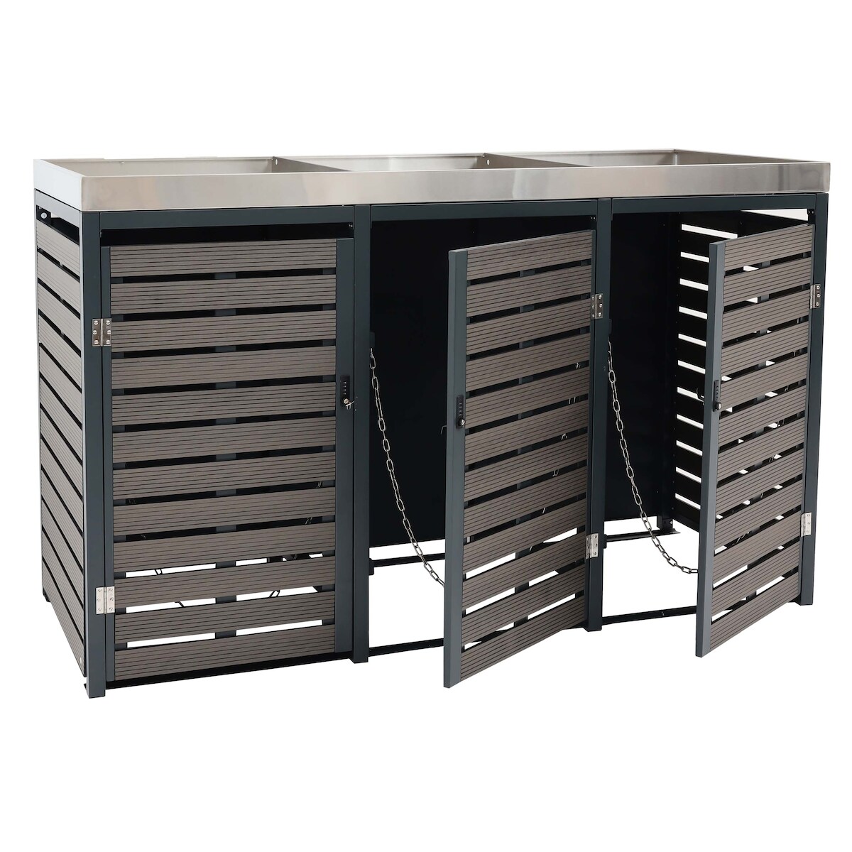 Mendler 3er Mülltonnenverkleidung HWC-K14, Mülltonnenbox mit Pflanzkasten, 124x200x84cm WPC Edelstahl 107kg ~ anthrazit