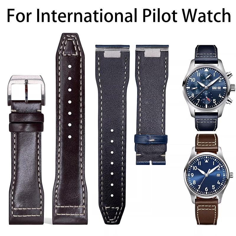 20mm 21mm 22mm Horlogeband Voor IWC Pilot Spitfire Princekin Mark dermis Zwart Bruin Rundleer Polsband Vouwsluiting Horlogeband