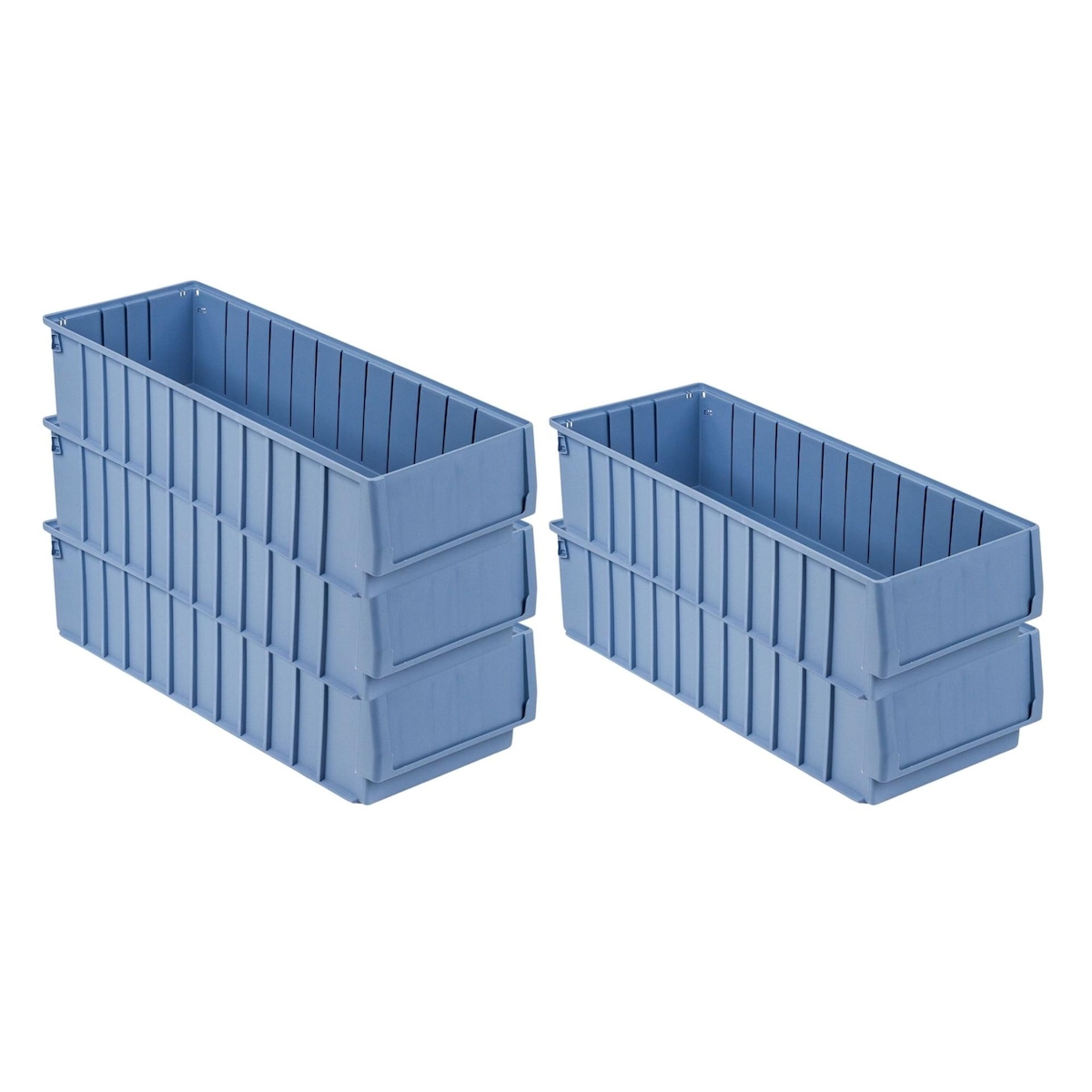 PROREGAL 5x Regalkasten 600 BH mit Etikett & Schutzhaube | HxBxT 14x23,4x60cm | 15,4 Liter | Sichtlagerkasten, Sortimentskasten