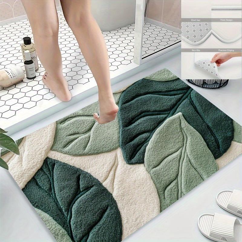 Green Leaf Pattern Bathroom Mat Mat, Machine Washable - Ideal for Kitchen, Entryway, and Shower Decor - Housewarming Gift, Bathroom Kitchen Accessory