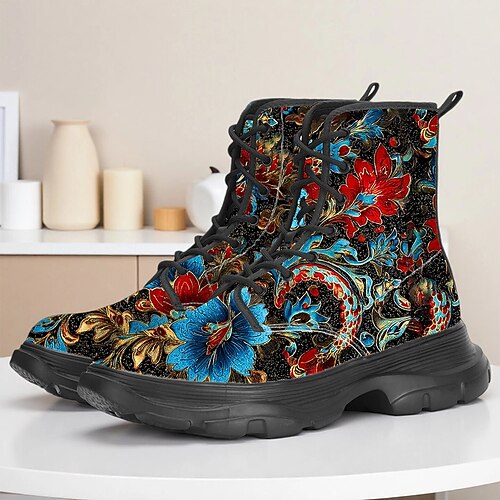 sneakers alte floreali da uomo, eleganti scarpe con lacci e suola in gomma resistente, comode per l'abbigliamento casual, moda outdoor alla moda per la primavera e l'autunno, perfette per lo streetwear e le avventure quotidiane