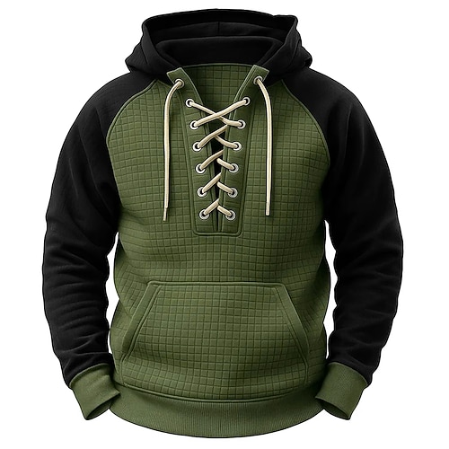 Per uomo Felpa con cappuccio Maglia Felpa a nido d'ape Maglione Verde militare Blu marino Blu Cachi Grigio Con Cappuccio Semplice Allacciato Patchwork Sport Outdoor Casuale Quotidiano Streetwear