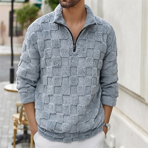 Per uomo Maglione Felpa con cappuccio in pile Felpa con zip corta Felpa con cappuccio foderata in pile Nero Bianco Rosa Blu marino Blu Colletto Mao Semplice Sport Outdoor Casuale Quotidiano