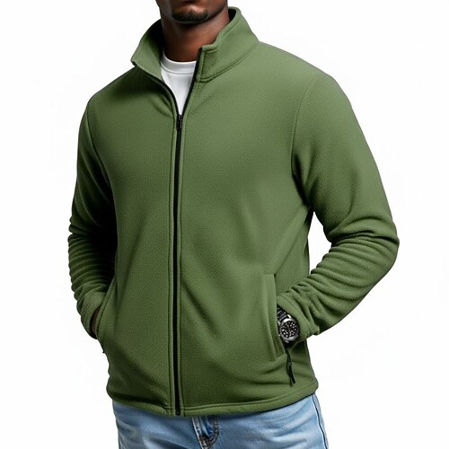 Per uomo Felpa Felpa con zip Di pile Compatto Nero Verde militare Blu marino Grigio Colletto Mao Liscio Sportivo Giornaliero Per eventi Streetwear Essenziale Informale Primavera Autunno