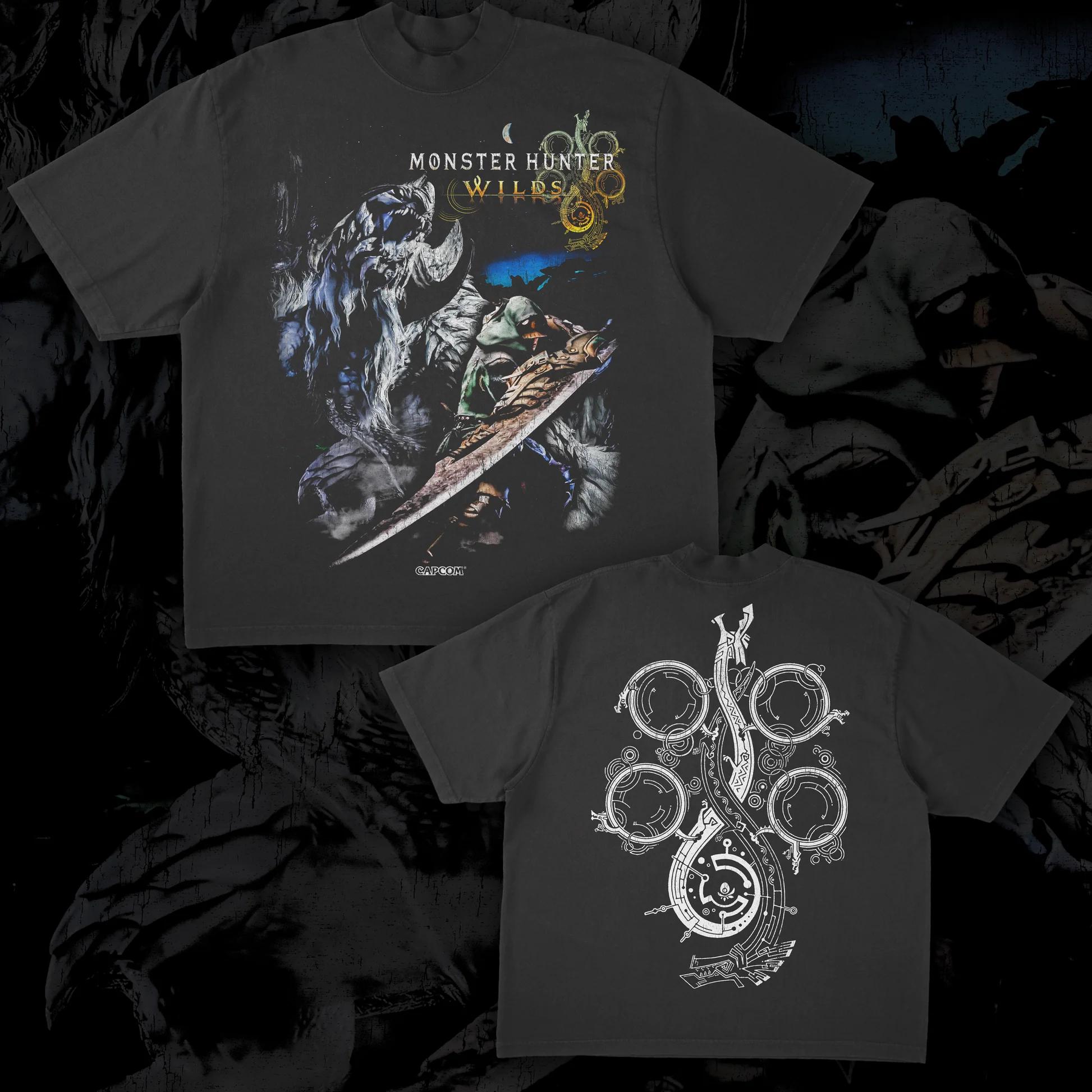 Monster Hunter Wilds T-shirt Manches Courtes Imprimé Hommes et Femmes Été Coton Confortable Coupe Ample Mode Haut cm