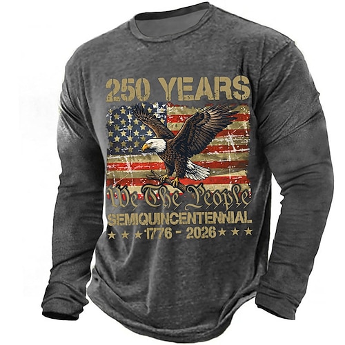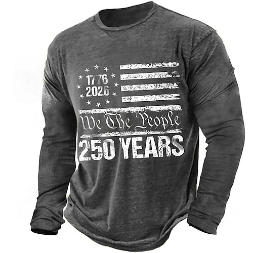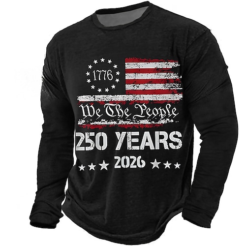 250° anniversario dell'America Per uomo 250° anniversario degli Stati Uniti Maglietta Manica Lunga maglietta Stampa 3D Girocollo Camicia Quotidiano Casual Quotidiano Viaggio Feste Blu Nero Rosso